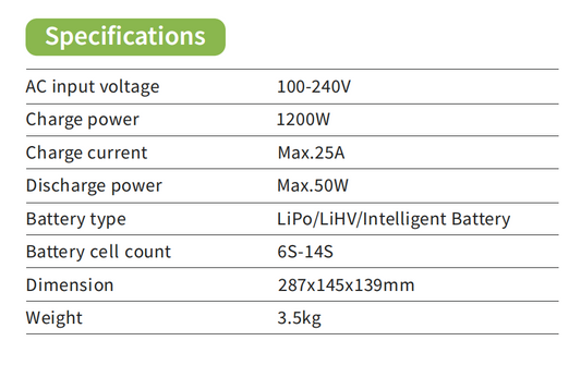 1200W/25A Intelligent Balance Charger for 6S/12S/14S LiPo/LiHV Batteries